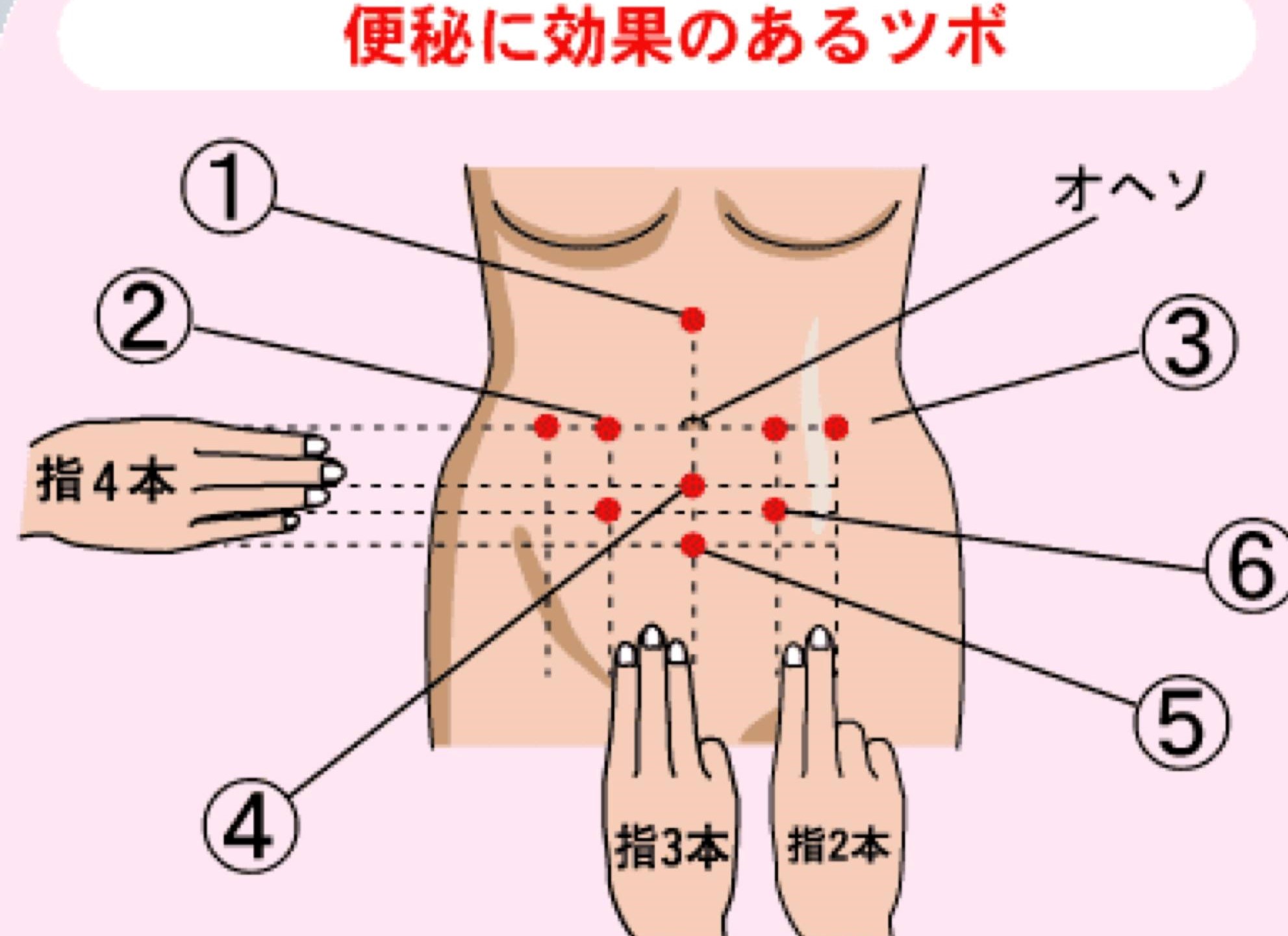腸もみとは、お腹にある数カ所のツボを押すことで