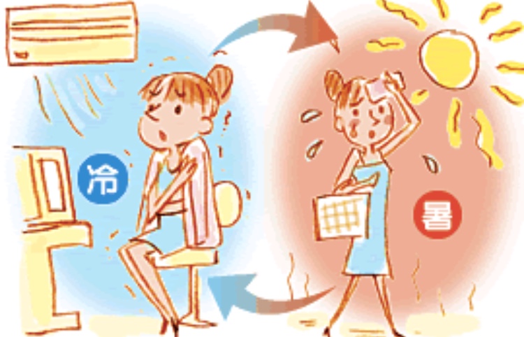 クーラーの効いた部屋に長時間いると、外出先との激しい温度差に順応が追いつかず、自律神経のバランスが崩れています。